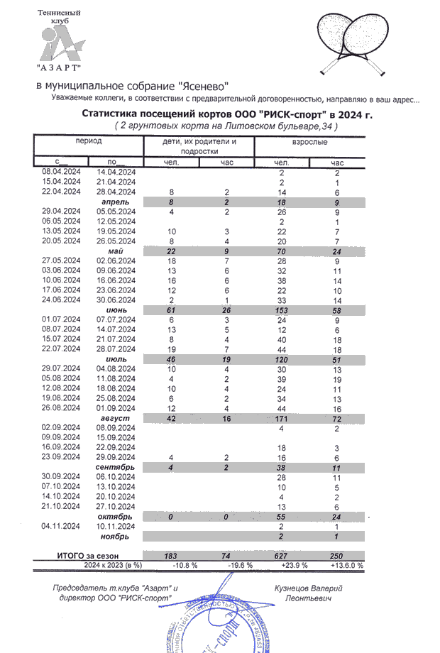 Детские и семейные пары на корте продолжают убывать с печальным постоянством с далекого 2019 г.